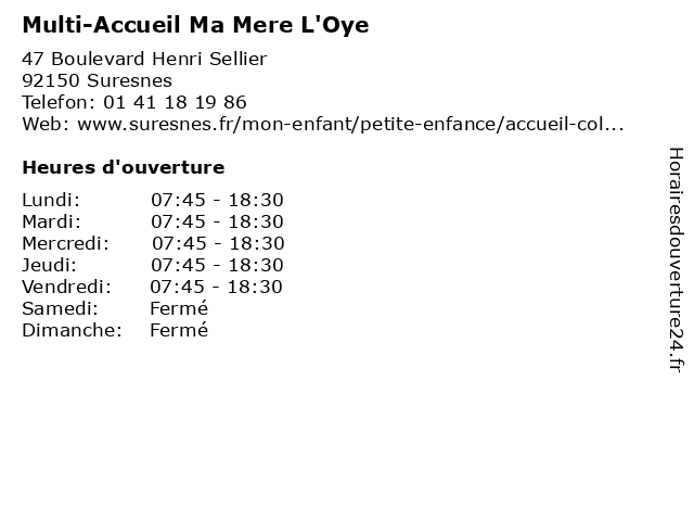 | Lundi | 07:45-18:30 |