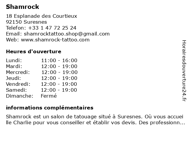 Shamrock est un salon de tatouage situé à Suresnes. Où vous accueille Charlie pour vous conseiller et établir vos devis. Des professionnels qui créent sur-mesure tous vos tatouages des plus sa...