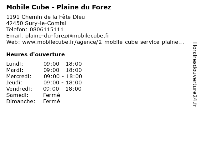 | Samedi | Fermé |