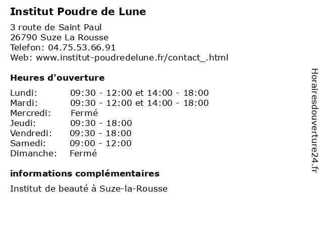 | Lundi | 09:30-12:00 et 14:00-18:00 |