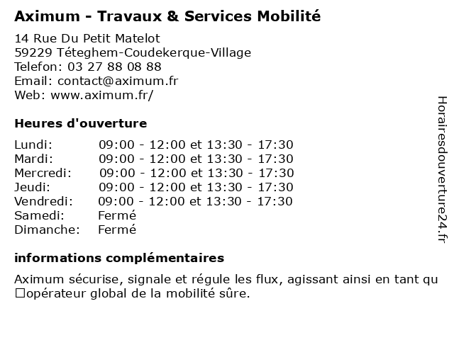 Lundi | 09:00-12:00 et 13:30-17:30 |