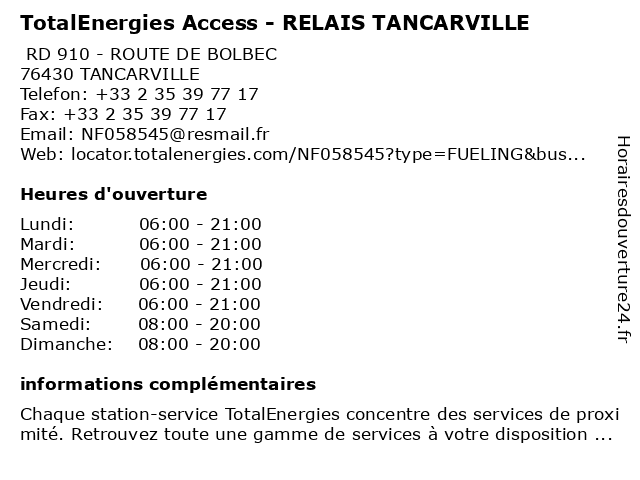Termes de recherche pour TotalEnergies Access - RELAIS TANCARVILLE:relais, access, total, tancarville, gas station, station service, tankstelle, totalenergies |