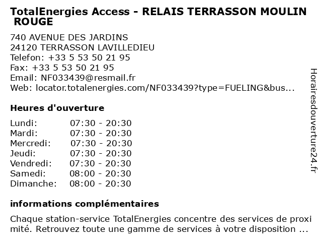 Termes de recherche pour TotalEnergies Access - RELAIS TERRASSON MOULIN ROUGE:relais, terrasson, access, moulin, rouge, total, gas station, station service, tankstelle, totalenergies |