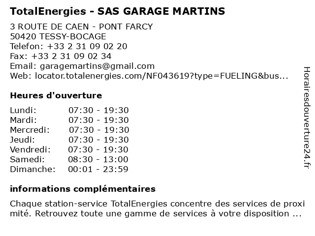 Termes de recherche pour TotalEnergies - SAS GARAGE MARTINS:garage, sas, total, martins, gas station, station service, tankstelle, totalenergies |