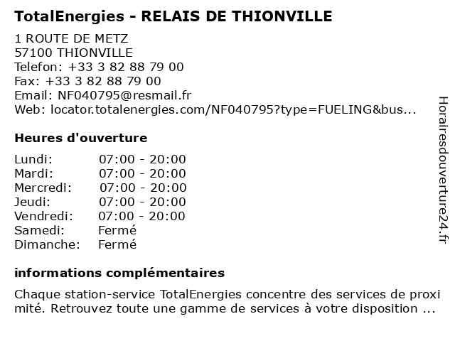 Termes de recherche pour TotalEnergies - RELAIS DE THIONVILLE:relais, de, thionville, total, gas station, station service, tankstelle, totalenergies |
