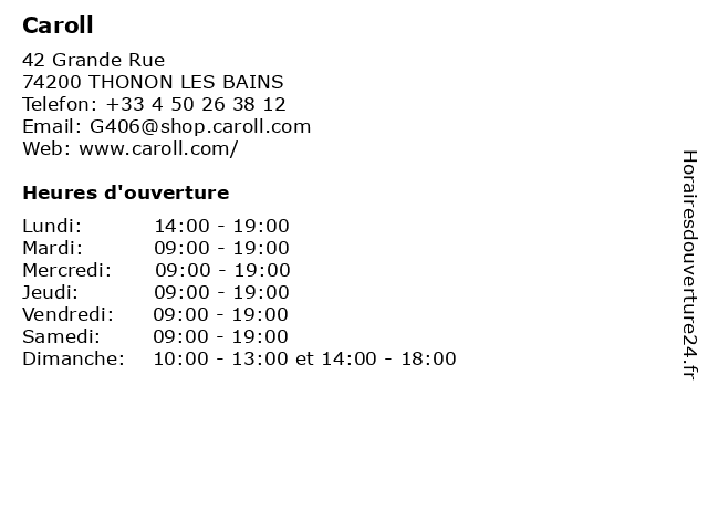 | Dimanche | 10:00-13:00 et 14:00-18:00 |