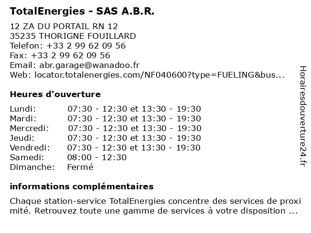 Termes de recherche pour TotalEnergies - SAS A.B.R.:sas, total, gas station, station service, a.b.r., tankstelle, totalenergies |