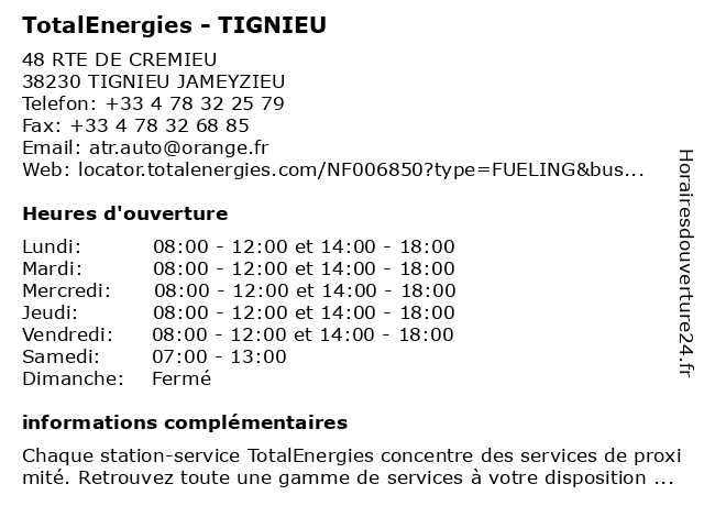 Termes de recherche pour TotalEnergies - TIGNIEU:tignieu, total, gas station, station service, tankstelle, totalenergies |