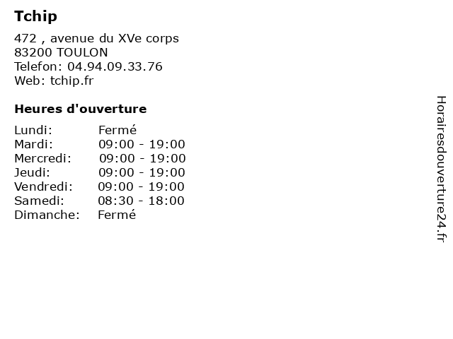 1 Tchip Coiffure (Distance: 3,98 km) 5 Avenue Garibaldi, 83500 La Seyne sur Mer beaute, coiffure, salon, tchip 2 Tchip Coiffure (Distance: 8,43 km) 55 Mail de la Planquette, 83130 La Garde beaute, coiffure, salon, tchip 3 Tchip Coiffure (Distance: 25,38 km) - En face de Carrefour, 13600 La Ciotat beaute, coiffure, salon, tchip 4 Tchip Coiffure (Distance: 33,31 km) 3 Rue Petit Paradis, 83170 Brignoles cheveux, coiffure, salon, soins, tchip 5 Tchip Coiffure (Distance: 33,31 km) 3 rue du Petit Paradis, 83170 Brignoles beauté, brignoles, coiffeur, coiffure, forfait, mixte, tchip 6 |
