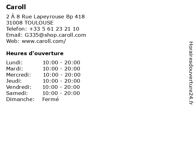 1 Caroll (Distance: 0,16 km) 33 Rue d'Alsace Lorraine, 31000 Toulouse blazer femme, cardignan femme, caroll, chaussures femme, gilet femme, jean femme, magasin femme, magasin vêtements, manteau femme, mode femme, pull femme, robe femme, sac femme, t-shirt femme, tailleur femme, top femme, vêtements femmes 2 Caroll (Distance: 7,57 km) 2 Allée Emile Zola, 31700 Blagnac blazer femme, cardignan femme, caroll, chaussures femme, gilet femme, jean femme, magasin femme, magasin vêtements, manteau femme, mode femme, pull femme, robe femme, sac femme, t-shirt femme, tailleur femme, top femme, vêtements femmes 6 |