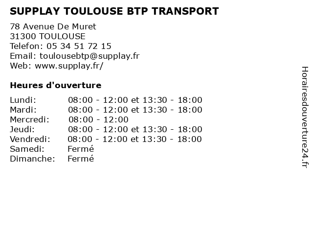 | Lundi | 08:00-12:00 et 13:30-18:00 |