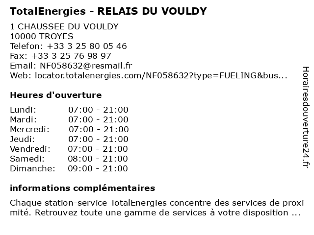 | Vendredi | 07:00-21:00 |