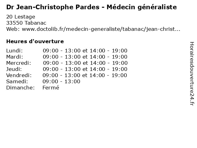 | Mardi | 09:00-13:00 et 14:00-19:00 |