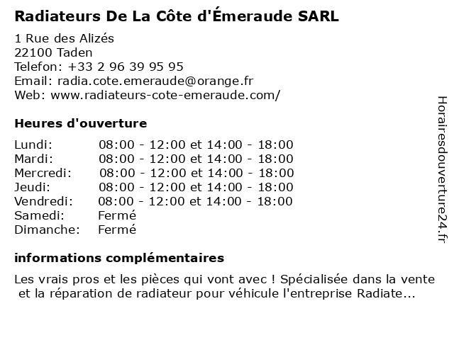 Termes de recherche pour Radiateurs De La Côte d'Émeraude SARL:la, de, sarl, cote, d'emeraude, radiateurs |