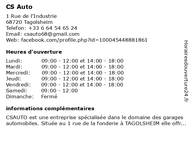 | Lundi | 09:00-12:00 et 14:00-18:00 |
