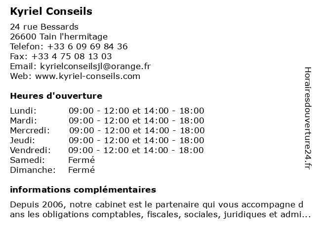 | Lundi | 09:00-12:00 et 14:00-18:00 |