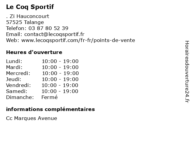 1 Le Coq Sportif (Distance: 0,37 km) - A31, 57525 Talange beauté, boutiques, coq, déco, enfants, le, mode, mode femme, shopping, sportif 2 Le Coq Sportif (Distance: 0,98 km) Zi Hauconcourt, 57525 Talange beaute, chaussures, coq, le, lingerie, mode enfants, mode femmes, mode hommes, sport, sportif 3 Le Coq Sportif (Distance: 1,08 km) n/a Talange Hauconcourt, 57525 Talange avenue, centre, commercial, coq, le, marques, sportif, talange 4 Coq n'Roll (Distance: 11,85 km) 11 Rue de Paris, 57000 Metz bar, bistro, bistrot, brasserie, café, coq, n'roll, restaurant, restauration 5 MISE AU GREEN (Distance: 0,07 km) Z.I. Talange-Hauconcourt, 57525 Talange au, cardigan, chemise, doudoune, green, jeans, mise, pantalons, parka, polo, pulls, robes, sweat 6 MISE AU GREEN (Distance: 0,84 km) Rue de la Grande Rayée, 57280 Hauconcourt au, cardigans, chemise, doudoune, green, jeans, mise, pantalons, parka, polo, pulls, robes, sweat |