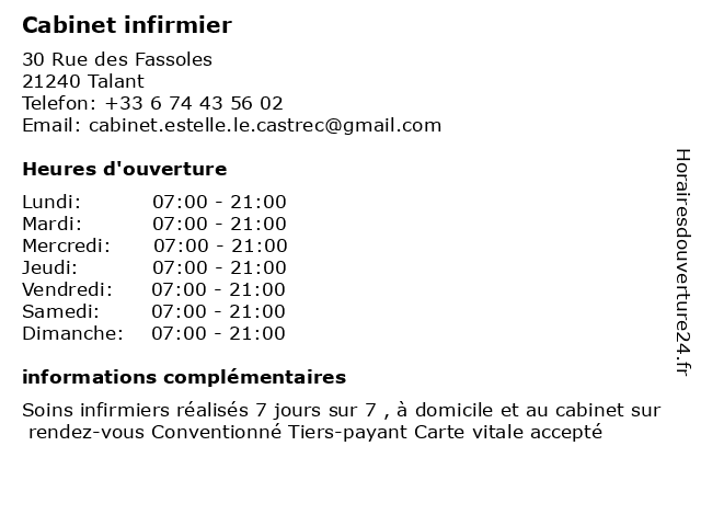1 Cabinet Infirmier Chboureg (Distance: 0,06 km) 63 Boulevard de Troyes, 21240 Talant cabinet, chboureg, consultation, docteur, infirmier, med, médecin, traitement 2 Cabinet Dentaire Galilée-Dentiste (Distance: 1,84 km) 24 Avenue Victor Hugo, 21000 Dijon cabinet, consultation, dentaire, dentiste, docteur, galilée, santé 3 Vincent Rault - Infirmier (Distance: 1,86 km) 1 avenue Edouard Belin, 21000 Dijon infirmier, rault, relaxation, santé, soins, thérapies, vincent 4 Cabinet Infirmier La Fontainoise (Distance: 2,10 km) 5 Rue des Frères Paquet, 21121 Fontaine-lès-Dijon cabinet, fontainoise, infirmier, la, medical, paramédical, sante, soins 5 Cabinet infirmier - Avenue du Drapeau (Distance: 2,66 km) 66 bis Avenue du Drapeau, 21000 Dijon avenue, cabinet, docteurs, drapeau, du, infirmier, medecins, medical 6 Cabinet infirmier Bret Favelier (Distance: 2,74 km) 28 Avenue Gustave Eiffel, 21000 Dijon bret, cabinet, consultation, docteur, favelier, infirmier, med, médecin, traitement |