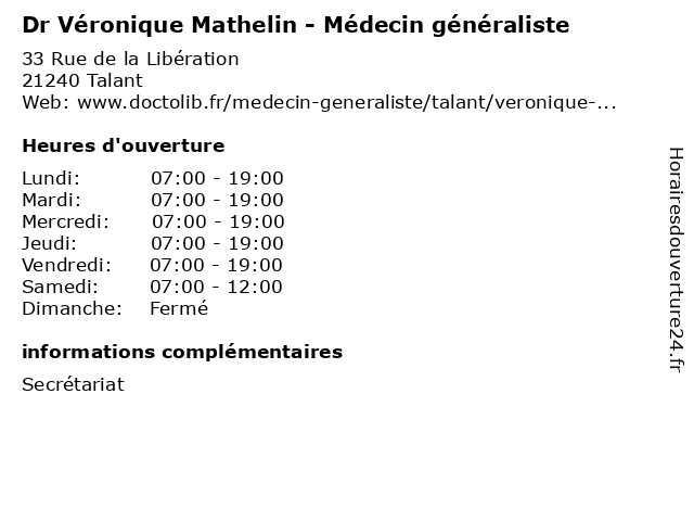 | Lundi | 07:00-19:00 |