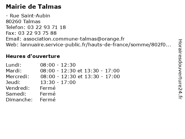 Termes de recherche pour Mairie de Talmas:de, administration, mairie, assoc public, talmas |