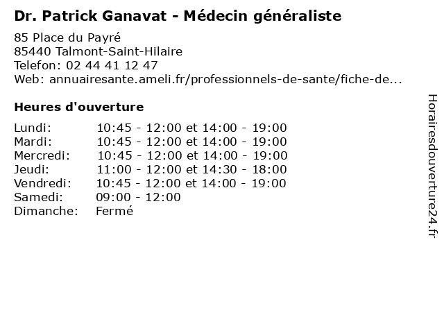 | Lundi | 10:45-12:00 et 14:00-19:00 |