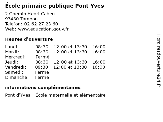 | Lundi | 08:30-12:00 et 13:30-16:00 |
