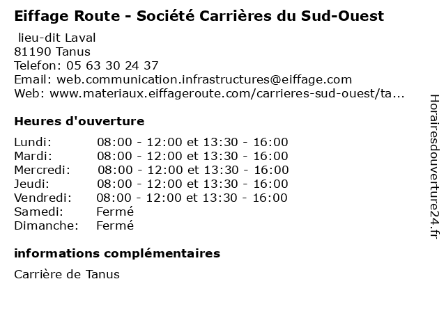 | Lundi | 08:00-12:00 et 13:30-16:00 |