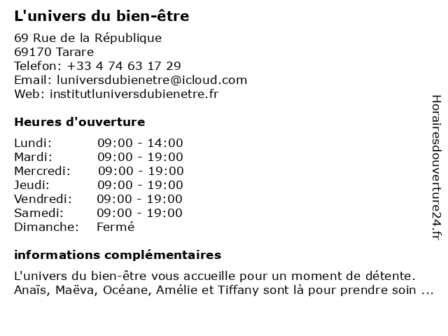 Horaires d'ouverture |