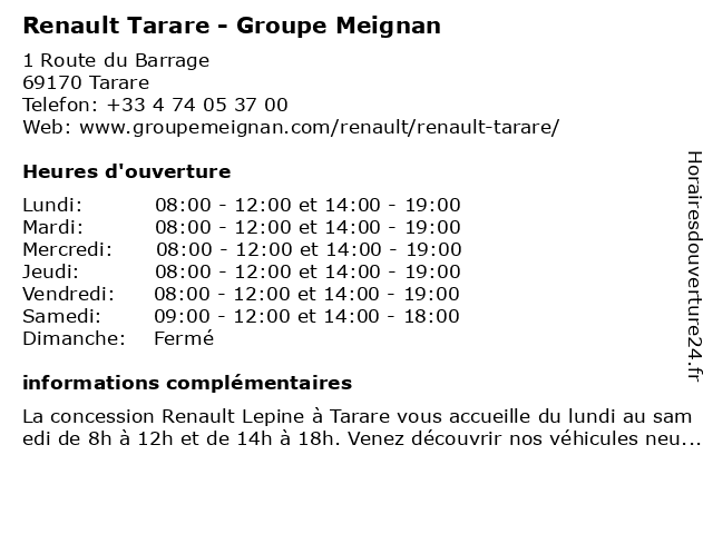 | Lundi | 08:00-12:00 et 14:00-19:00 |