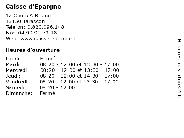 1 Caisse D'epargne (Distance: 0,10 km) 15 Cours A Briand, 13150 Tarascon banque, caisse, carte, d'epargne, services 2 Caisse D'epargne (Distance: 1,50 km) 2 Boulevard Marechal Foch, 30300 Beaucaire banque, caisse, carte, d'epargne, services 3 Caisse D'epargne (Distance: 13,05 km) 34 Avenue Bertherigues, 13570 Barbentane banque, caisse, carte, d'epargne, services 4 Caisse d'Epargne (Distance: 13,59 km) - MARCHANDE, 13200 Arles assurances, banques, caisse, d'epargne, services 5 Caisse d'Epargne (Distance: 15,32 km) - Avenue Bourgade, 13210 Saint-Rémy-de-Provence assurances, banques, caisse, d'epargne, services 6 Caisse d'Epargne (Distance: 15,33 km) 11 Avenue R. Rolland, 13630 Eyragues assurances, banques, caisse, d'epargne, services |