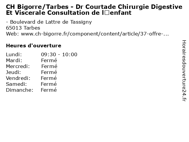 1 CH Bigorre/Tarbes - Dr Courtade Chirurgie Digestive Et Viscerale Consultation de l’enfant (Distance: 1,11 km) 2 Rue de l'Ayguerote, 65000 Tarbes bigorre/tarbes, bureau, ch, chirurgie, consultation, courtade, de, digestive, dr, et, l’enfant, maladie, med, médecin, médecine, pratique, thérapie, traitement, viscerale 2 CH Bigorre/Tarbes - Dr Glibert (Distance: 0,00 km) - Boulevard de Lattre de Tassigny, 65013 Tarbes bigorre/tarbes, bureau, ch, consultation, dr, glibert, maladie, med, médecin, médecine, pratique, thérapie, traitement 3 CH Bigorre/Tarbes - Dr Michard (Distance: 0,00 km) - Boulevard de Lattre de Tassigny, 65013 Tarbes bigorre/tarbes, bureau, ch, consultation, dr, maladie, med, michard, médecin, médecine, pratique, thérapie, traitement 4 CH Bigorre/Tarbes - Dr Desjardins (Distance: 0,00 km) - Boulevard de Lattre de Tassigny, 65013 Tarbes bigorre/tarbes, bureau, ch, consultation, desjardins, dr, maladie, med, médecin, médecine, pratique, thérapie, traitement 5 CH Bigorre/Tarbes - Dr Prehu (Distance: 0,00 km) - Boulevard de Lattre de Tassigny, 65013 Tarbes bigorre/tarbes, bureau, ch, consultation, dr, maladie, med, médecin, médecine, pratique, prehu, thérapie, traitement 6 CH Bigorre/Tarbes - Anesthesiologie (Distance: 0,00 km) - Boulevard de Lattre de Tassigny, 65013 Tarbes anesthesiologie, bigorre/tarbes, bureau, ch, consultation, dr, maladie, med, médecin, médecine, pratique, thérapie, traitement |