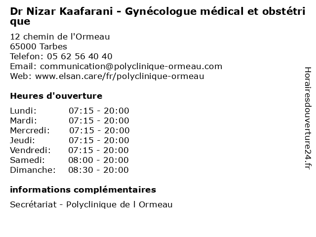 | Samedi | 08:00-20:00 |