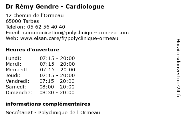 1 Dr Thierry Bonnemains - Cardiologue (Distance: 0,00 km) 12 chemin de l'Ormeau, 65000 Tarbes bonnemains, cardiologue, consultation, docteur, dr, med, médecin, médecine, thierry, traitement 2 Dr Bertrand Paviot - Cardiologue (Distance: 0,00 km) 12 chemin de l'Ormeau, 65000 Tarbes bertrand, cardiologue, consultation, docteur, dr, med, médecin, médecine, paviot, traitement 3 Dr Boussad Boudjemaa - Cardiologue (Distance: 0,00 km) 12 chemin de l'Ormeau, 65000 Tarbes boudjemaa, boussad, cardiologue, consultation, docteur, dr, med, médecin, médecine, traitement 4 Medecin Dominique Celse (Cardiologue) (Distance: 0,03 km) 10 Chemin de l’Ormeau, 65000 Tarbes cardiologue, celse, docteur, dominique, medecin, sante, services 5 Dr Nicolas Ley - Cardiologue (Distance: 0,37 km) 10 chemin de l'Ormeau, 65000 Tarbes cardiologie, cardiologue, consultation, docteur, dr, ley, nicolas, santé 6 Dr Bernard Truong - Cardiologue (Distance: 1,64 km) - Boulevard de Lattre de Tassigny, 65000 Tarbes bernard, cardiologue, consultation, docteur, dr, med, médecin, médecine, traitement, truong |