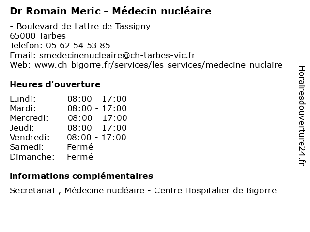 1 Dr Myriam Sassanelli - Médecin nucléaire (Distance: 0,00 km) - Boulevard de Lattre de Tassigny, 65000 Tarbes consultation, docteur, dr, med, myriam, médecin, médecine, nucléaire, sassanelli, traitement 2 Horlogerie Christophe Meric (Distance: 2,10 km) 11 Place Marcadieu, 65000 Tarbes bijoux, bracelets, christophe, horlogerie, meric 3 Dr Romain Macorigh - Médecin généraliste (Distance: 2,20 km) 18 Place Marcadieu, 65000 Tarbes consultation, docteur, domicile, dr, en, générale, généraliste, macorigh, médecin, médecine, romain, santé, visite 5 Chrono Bike (Distance: 33,25 km) 12 avenue albert 1er, 64320 Bizanos bike, chrono, kevin, motos, neill, romain, thomas, vente 6 Dr Theodore Herrmann - Médecin nucléaire - secrétariat (Distance: 34,75 km) 4 Boulevard Hauterive, 64000 Pau dr, herrmann, médecin, médecins, médicaments, nucléaire, santé, secrétariat, spécialiste, theodore |