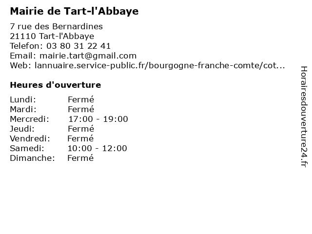Termes de recherche pour Mairie de Tart-l'Abbaye:de, administration, mairie, tart, l'abbaye, service public |