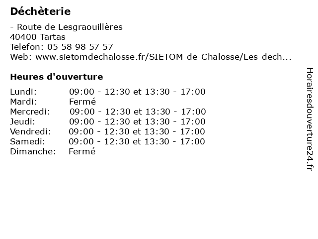 1 Déchèterie (Distance: 9,50 km) - Route de Saint Sever, 40250 Mugron bennes, déchets, déchèterie, détritus, gravats 2 Déchèterie (Distance: 10,87 km) 2060 Route de l'Océan, 40465 Pontonx-sur-l'Adour bennes, déchets, déchèterie, détritus, gravats 3 Déchèterie (Distance: 13,34 km) - Zone artisanale de Pelletet, 40370 Rion-des-Landes bennes, déchets, déchèterie, détritus, gravats 4 Déchèterie (Distance: 13,86 km) - Hameau Les Landes, 50340 Héauville bennes, déchèterie, détritus, ménagers, ordures, poubelle 5 Déchèterie (Distance: 15,90 km) - Route du Dupéré, 40380 Poyartin bennes, déchets, déchèterie, détritus, gravats 6 Déchèterie (Distance: 18,19 km) 815 route des Partenses, 40250 Caupenne bennes, déchets, déchèterie, détritus, gravats |