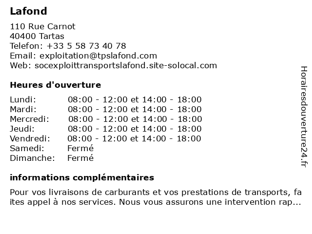 | Lundi | 08:00-12:00 et 14:00-18:00 |