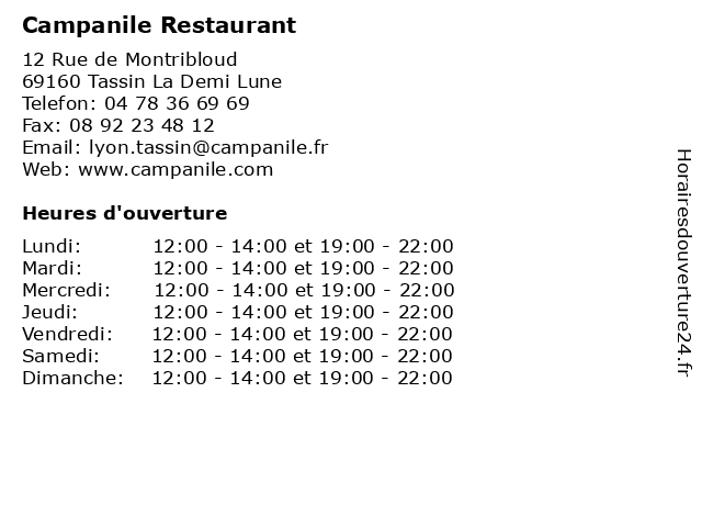| Dimanche | 12:00-14:00 et 19:00-22:00 |