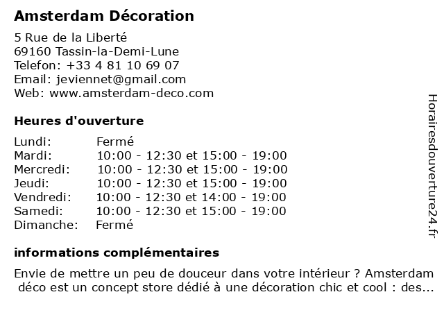 1 Amsterdam Déco (Distance: 0,01 km) 5 rue de la liberté, 69160 Tassin-la-Demi-Lune amsterdam, déco, magasins, meubles, mobilier, vente 2 Confort Textile Décoration SARL (Distance: 0,23 km) 99 Avenue Charles de Gaulle, 69160 Tassin-la-Demi-Lune confort, décoration, sarl, textile 3 Boutique Rose - Cadeaux et décoration (Distance: 3,90 km) 4 bis Rue Jarente, 69002 Lyon boutique, cadeaux, décoration, enfant, et, femme, homme, rose, vêtements 4 Claude Cartier Décoration (Distance: 4,21 km) 25 Rue Auguste Comte, 69002 Lyon art, business, cartier, claude, décoration, furnitures, stores 5 Boutique Rose - Cadeaux et décoration (Distance: 5,09 km) 27 Rue Cuvier, 69006 Lyon boutique, cadeaux, décoration, enfant, et, femme, homme, rose, vêtements 6 Decorient - Ameublement & Décoration (Distance: 5,19 km) 26 rue Moncey, 69003 Lyon ameublement, artisan, artisanat, decorient, déco, décorateur, décoration, tapissier, tissus |