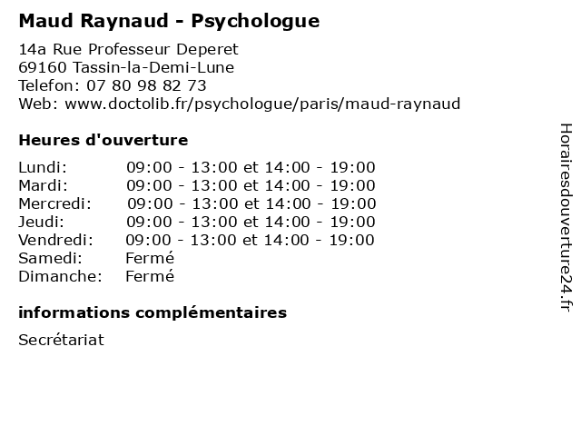 | Lundi | 09:00-13:00 et 14:00-19:00 |