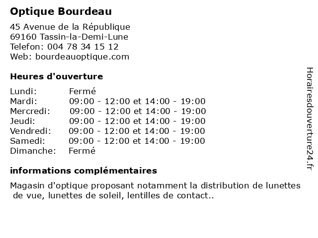 2 Optique Bourdeau (Distance: 4,26 km) 53 Rue de la Charité, 69002 Lyon bourdeau, lunettes, opticien, optique 3 Optique Bourdeau (Distance: 4,76 km) 101 Avenue Edouard Millaud, 69290 Craponne bourdeau, lunettes, opticien, optique 4 Optique Bourdeau (Distance: 4,94 km) 29 Cours Franklin Roosevelt, 69006 Lyon bourdeau, lunettes, opticien, optique 5 OPTIQUE BOURDEAU POIGNANT (Distance: 0,04 km) 37 Avenue de la République, 69160 Tassin-la-Demi-Lune bourdeau, optique, poignant 6 Concept Optique (Distance: 1,25 km) 14 Rue Auguste Tramier, 69130 Écully concept, lunettes, magasin, opticien, optique, vue |