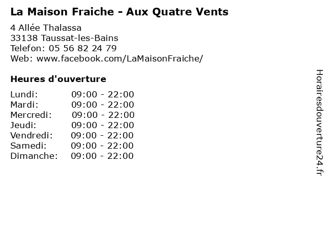 Termes de recherche pour La Maison Fraiche - Aux Quatre Vents:la, mer, aux, maison, quatre, fruits, vents, fraîche, huitres, fournisseur |
