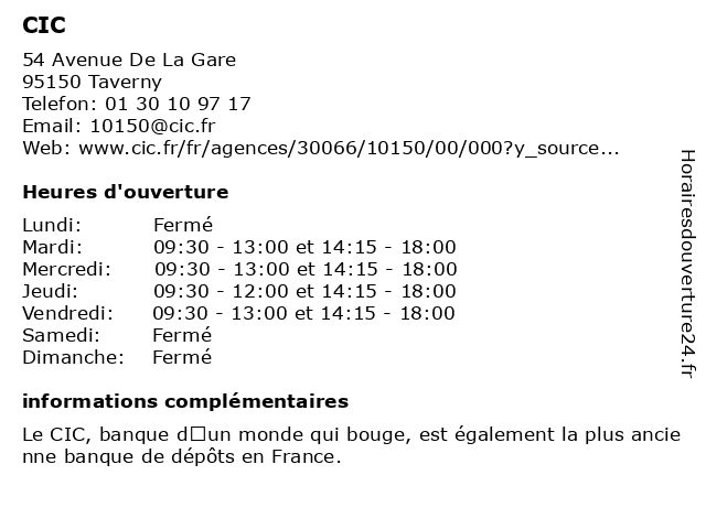 Horaires d'ouverture |