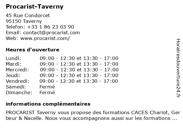 | Lundi | 09:00-12:30 et 13:30-17:00 |