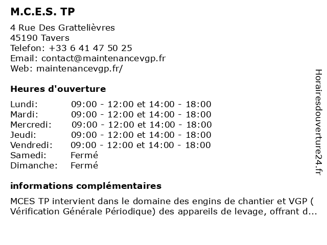 | Lundi | 09:00-12:00 et 14:00-18:00 |