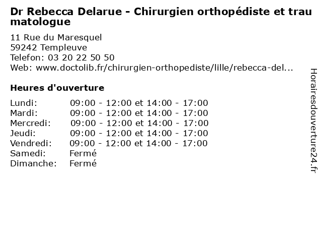1 Dr Rebecca Delarue - Chirurgien orthopédiste et traumatologue (Distance: 12,61 km) - Boulevard de Belfort, 59000 Lille chirurgien, consultation, delarue, docteur, dr, et, med, médecin, orthopédiste, rebecca, traitement, traumatologue 2 Dr Rebecca Delarue - Chirurgien orthopédiste et traumatologue (Distance: 18,81 km) - Rue du Grand But, 59462 Lomme chirurgien, consultation, delarue, docteur, dr, et, med, médecin, orthopédiste, rebecca, traitement, traumatologue 3 Dr Jean - Claude Bou - Chirurgien orthopédiste et traumatologue (Distance: 0,00 km) 11 Rue du Maresquel, 59242 Templeuve bou, chirurgien, claude, consultation, docteur, dr, et, jean, med, médecin, orthopédiste, traitement, traumatologue 4 Dr Cécile Pouges - Chirurgien orthopédiste et traumatologue (Distance: 0,00 km) 11 Rue du Maresquel, 59242 Templeuve chirurgien, consultation, cécile, docteur, dr, et, med, médecin, orthopédiste, pouges, traitement, traumatologue 5 Dr Mohamed Rtaimate - Chirurgien orthopédiste et traumatologue (Distance: 9,26 km) 94B Rue Gustave Delory, 59810 Lesquin chirurgie, chirurgien, dr, et, general, mohamed, orthopédiste, rtaimate, soins, traumatologue 6 Dr Pierre Auzias - Chirurgien orthopédiste (Distance: 9,26 km) 94b Rue Gustave Delory, 59810 Lesquin auzias, chirurgie, chirurgien, dr, general, orthopédiste, pierre, soins |