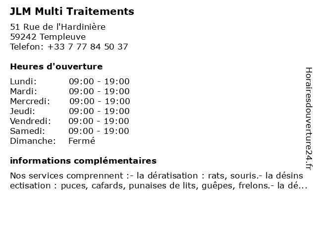 | Lundi | 09:00-19:00 |