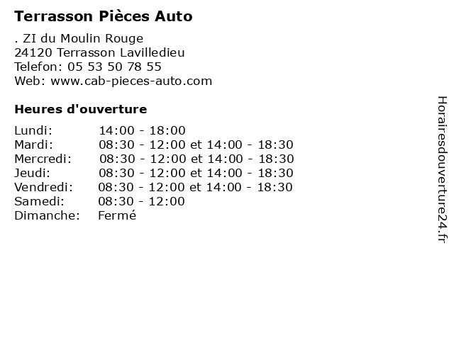 | Mardi | 08:30-12:00 et 14:00-18:30 |