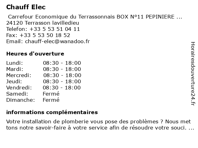 | Lundi | 08:30-18:00 |