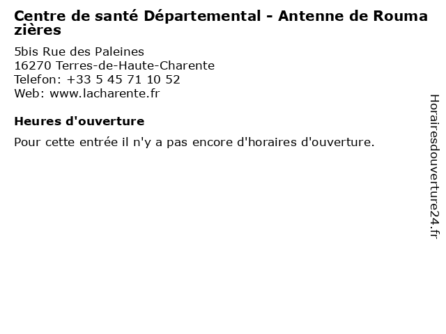 | Appeler Centre de santé Départemental - Antenne de Roumazières | |